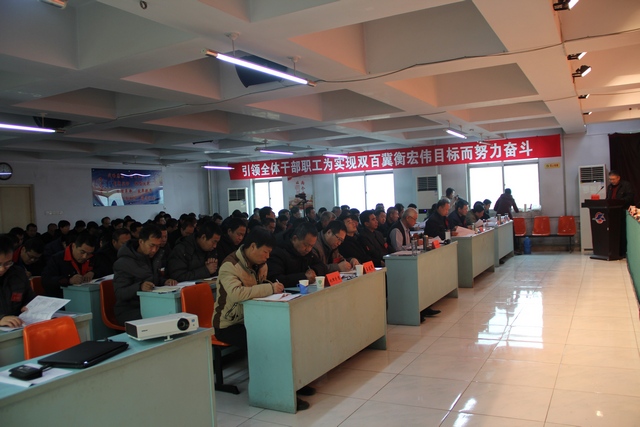 1月11日上午8時,河北冀衡集團八屆四次職工代表大會在雄壯的國歌聲中拉開序幕,各分子公司和各職能處室121名代表肩負3500名員工的重托齊聚六樓會議室,共謀冀衡發展大計。