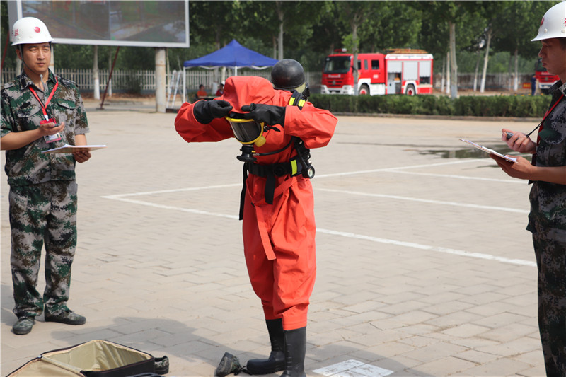6月27日,在衡水市2019年度危險(xiǎn)化學(xué)品生產(chǎn)安全事故應(yīng)急救援演練暨技能比武競(jìng)賽中,我公司圓滿完成了液氨泄漏事故應(yīng)急救援演練,同時(shí)在全市14支代表隊(duì)參加的4個(gè)比武項(xiàng)目中,我公司代表隊(duì)一舉奪得3個(gè)項(xiàng)目的第一名,一個(gè)項(xiàng)目的第四名,具體為: 王向陽(yáng)獲得防化服著裝空呼佩戴項(xiàng)目第一名,曹建強(qiáng)、肖保久獲得止血包扎項(xiàng)目第一名,李亞男獲得蘇生器使用項(xiàng)目第一名,田增祥獲得心肺復(fù)蘇項(xiàng)目第四名,在此向各位選手表示祝賀,向各位選手刻苦訓(xùn)練、不畏強(qiáng)手、沉著比賽展現(xiàn)出的化學(xué)精神學(xué)習(xí),讓我們共同為進(jìn)一步加強(qiáng)公司應(yīng)急管理,實(shí)現(xiàn)公司安全穩(wěn)定生產(chǎn)做出新的貢獻(xiàn)!