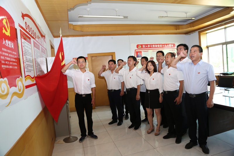 “我志愿加入中國共產(chǎn)黨……為共產(chǎn)主義奮斗終身,隨時準備為黨和人民犧牲一切,永不叛黨。”佩戴黨徽的黨員代表在鮮紅的黨旗下重溫入黨誓詞,他們高舉右手、握緊拳頭,莊嚴宣誓,這是一個黨員向組織一生的承諾,也是一個黨員向組織一生的擔當——不忘初心,牢記使命!
