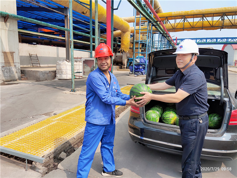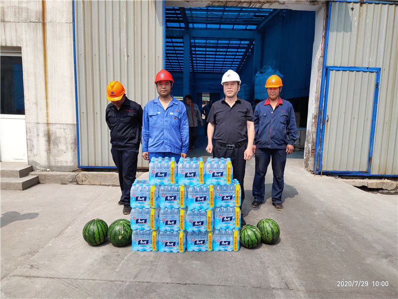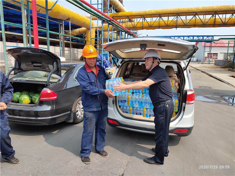 進(jìn)入三伏天后,一線職工的工作和生活情況時刻牽動著集團(tuán)領(lǐng)導(dǎo)的心,7月29日上午,集團(tuán)工會主席韓紅喜一行來到我公司三車間熱解崗位,為工作在一線的職工送去礦泉水、西瓜等解暑物品,韓主席同時囑咐大家在保證做好安全生產(chǎn)工作的同時,一定要照顧好自己的身體,注意勞逸結(jié)合和做好防暑工作,同時囑咐現(xiàn)場的管理人員做好職工后勤保障工作,切實(shí)保護(hù)好高溫天氣下廣大職工的身體健康。