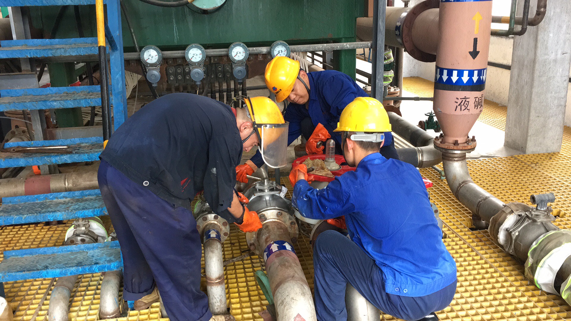 二車間職工為了設備能夠安全穩定、高效運行,崗位操作人員不畏高溫、酷暑,尤其是后工序人員,無論什么天氣,都要把自己包裹的“嚴嚴實實”,進入裝置區工作半小時,出來的時候靴子里就能倒出水來,為了改善職工操作環境,公司大力開展技術改造,通過物料風送、二水二氯混料工藝改造,有效地改善了職工的操作環境。